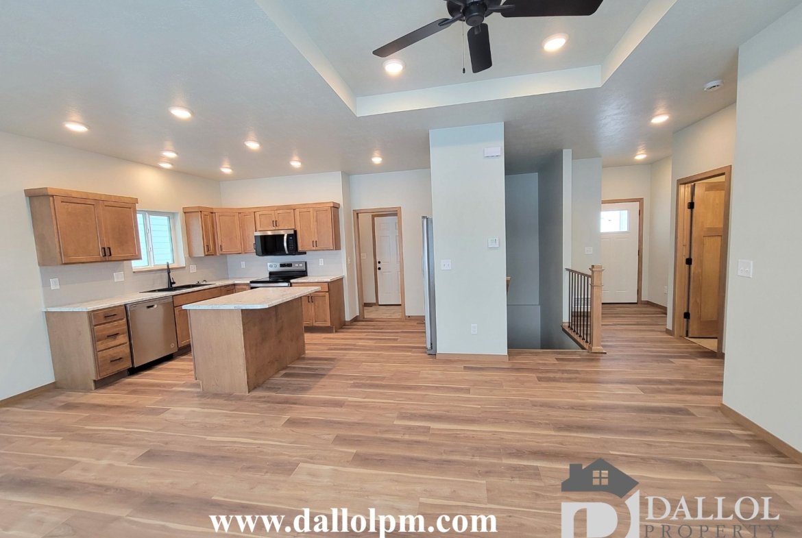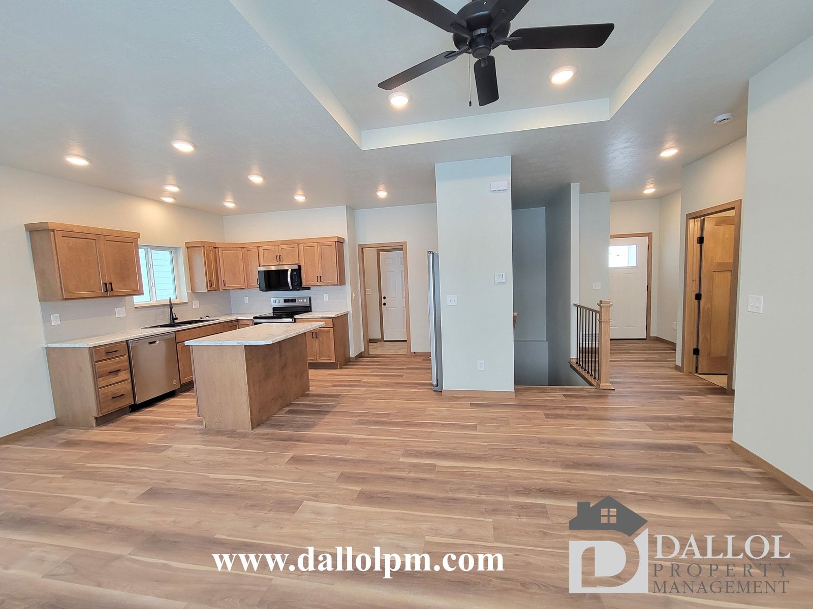 Adorable single family home with tons of character in eastern Sioux Falls! This brand new 4 bedroom, 2 bathroom home,  built in 2025, has loads of character with a modern touch. The open floor plan includes a fully equipped kitchen with stainless steel appliances, a spacious living room, and a formal dining area. The large kitchen has a breakfast bar with extra storage & a large dining area. The main level also features 2 bedrooms. The lower level offers a huge family room. The basement has a perfect hangout area, plenty of storage, and two bedrooms. The oversized two-stall attached garage with wooden shelving is perfect for extra storage. The yard has great space to hang out, including a cedar deck off the dining area & a paver patio in the shade. This home is minutes away from shopping centers and restaurants. Washer and Dryer included.